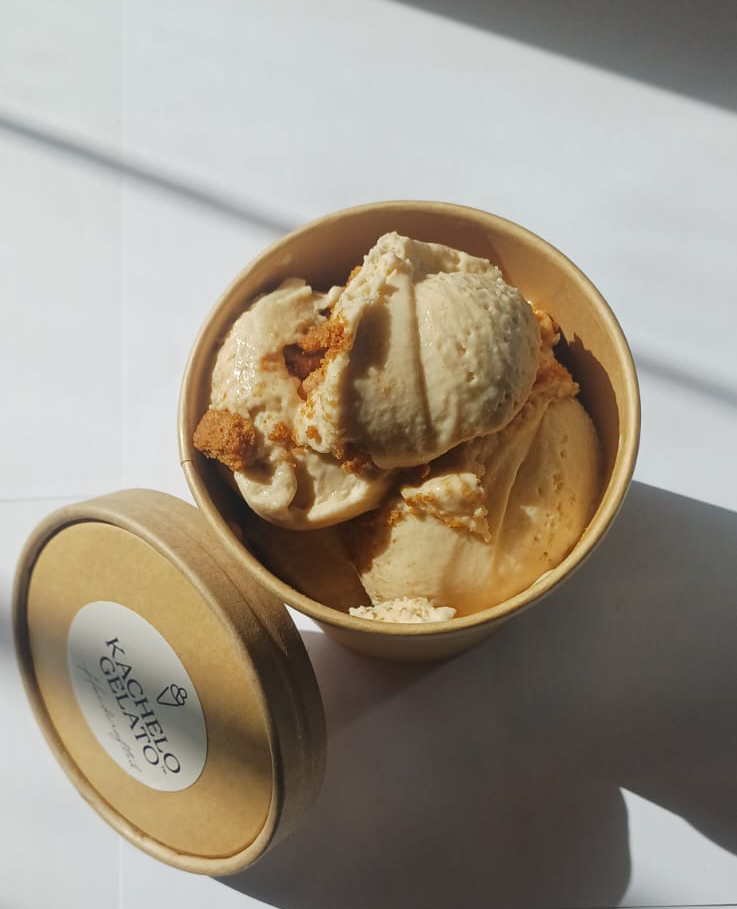 Silky caramelized gelato blended with Lotus Biscoff and crunchy biscuit sprinkles.