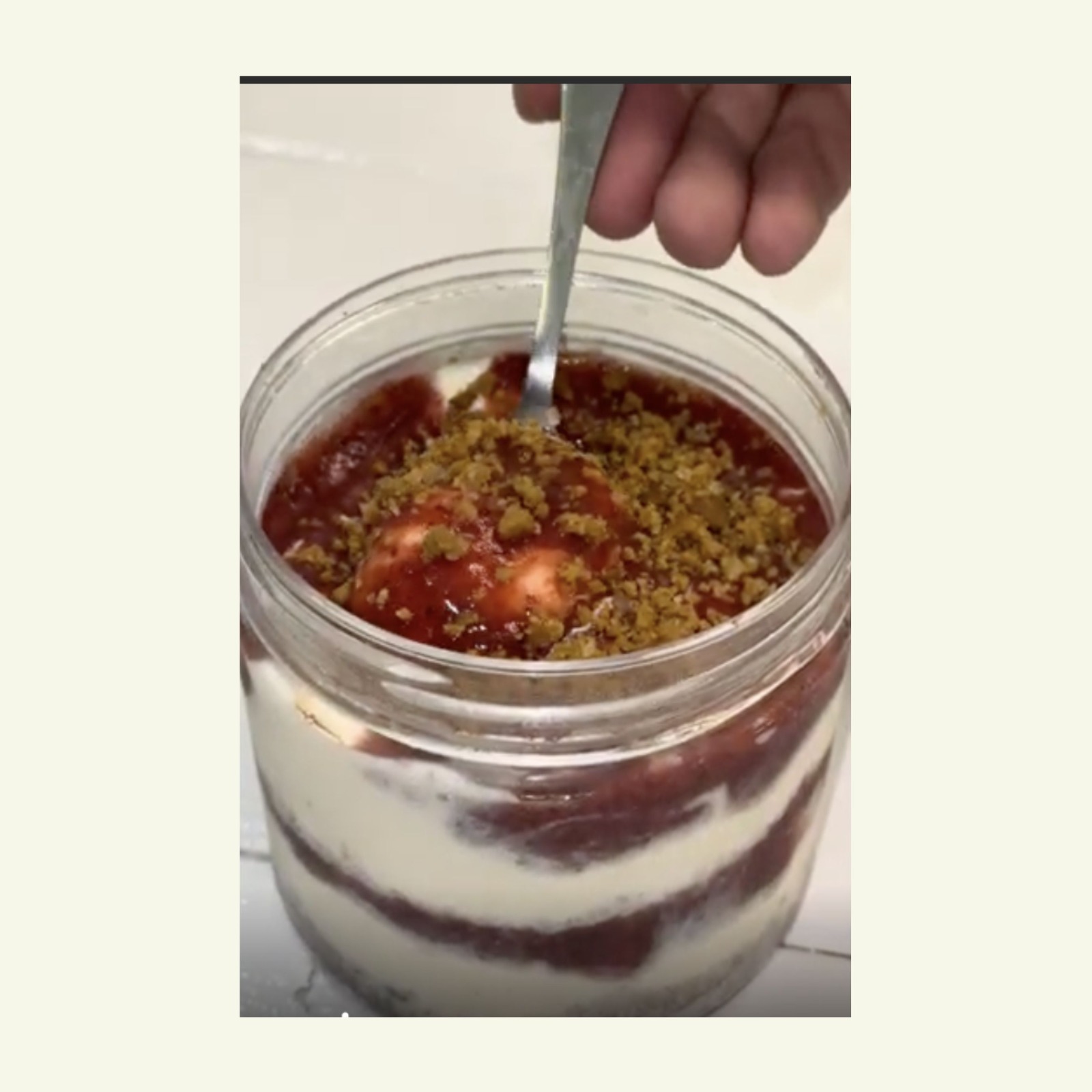 Fior di latte Gelato layered with Chantilly and red berries covered with biscuits