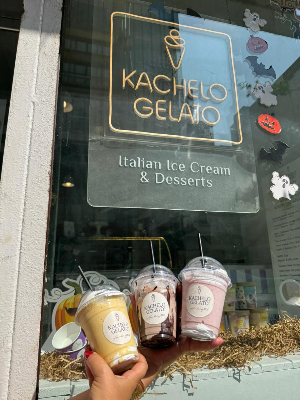 Waffle with Chocolate Drizzle and fior di latte Gelato